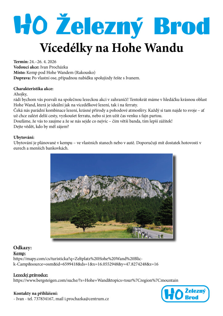 Vedoucí akce: Ivan Procházka, Klára. Prosím zájemce se nahlásit.